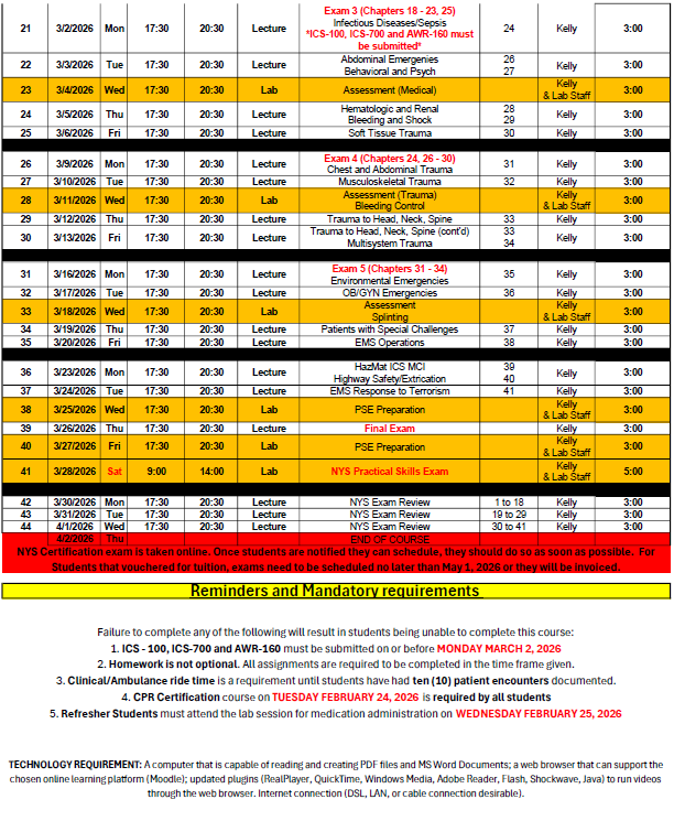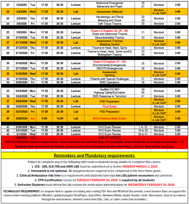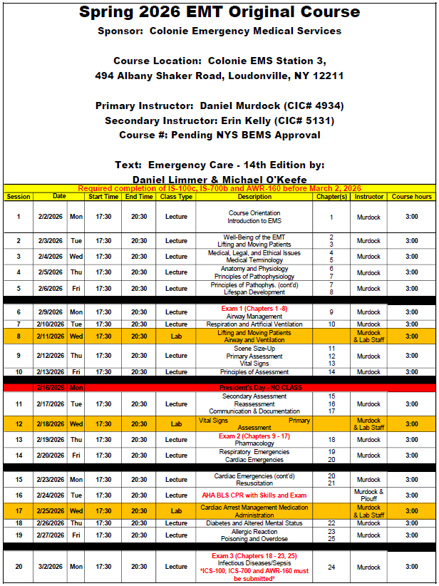 EMT Course Schedule 2026: